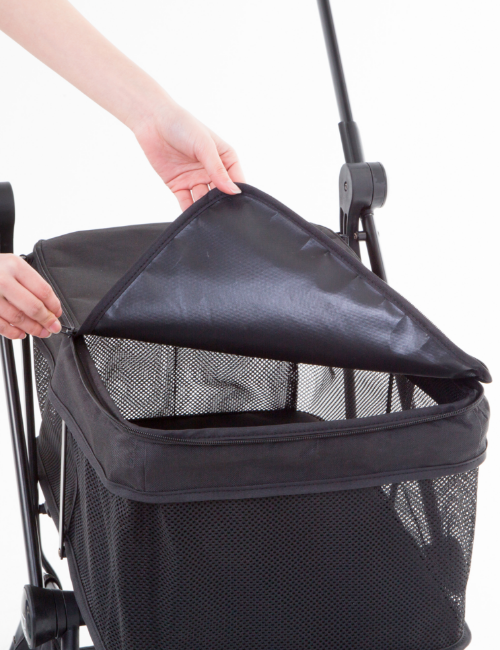 バスケット外側の2つのポケット。 駐車券やお買物のレシート、携帯電話などを入れることが出来ます。